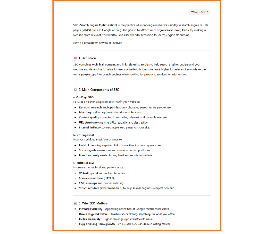 Figure 2: ChatGPT’s answer to the question “What is SEO?”.