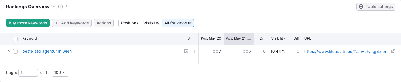 In traditional search engine optimisation, visibility is tracked using keywords. There are two approaches: you can either track your own set of highly relevant keywords, or analyse your domain’s visibility within large keyword samples (for example, using the SISTRIX Visibility Index).